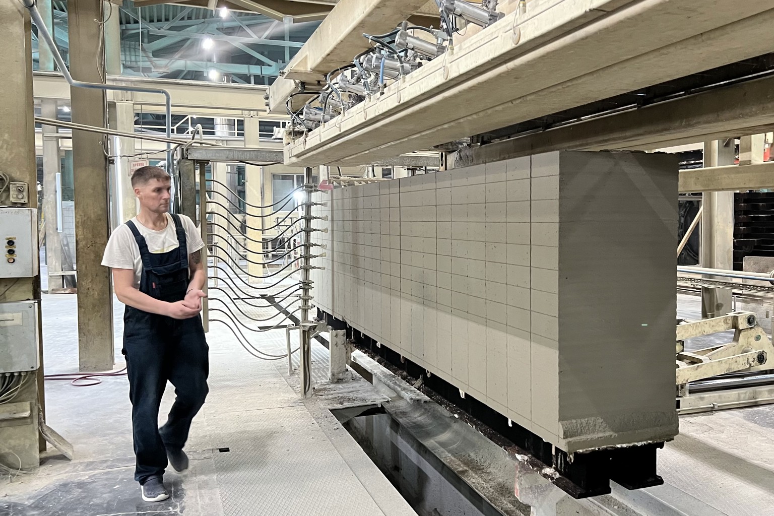 Мы производим газобетонную продукцию на технологической линии Wehrhahn — лидирующего производителя оборудования для изготовления автоклавного газобетона на рынке СНГ. Производственный процесс состоит из следующих этапов: помола песка, смешивания и дозирования, нарезки блоков, автоклавирования и упаковки. Эффективное автоматическое оборудование дает возможность производить изделия с высокоточной резкой, безупречной геометрией и стабильными показателями качества.